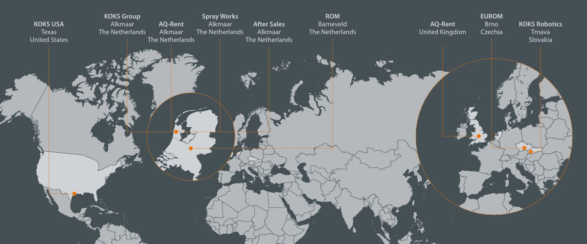 Skupina KOKS se nyní stala celosvětově působící a dynamickou společností s několika specializovanými provozními společnostmi v Nizozemsku, České republice, Saúdské Arábii a ve Spojených státech a účastí v půjčovnách v Nizozemsku a ve Velké Británii.