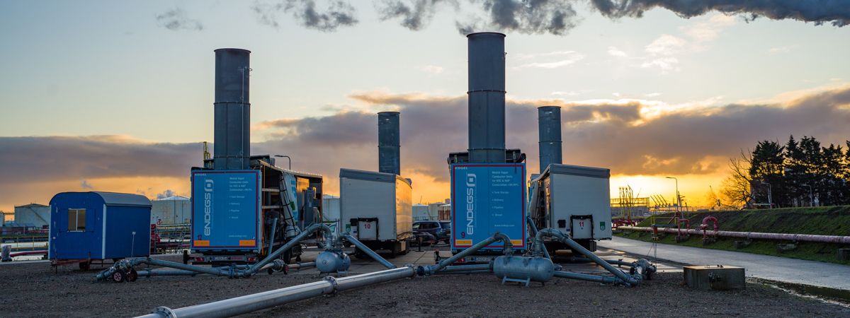 In 2008 ENDEGS developed the first mobile fully equipped, trailer-mounted, autonomously operating mobile incinerator for combusting gaseous hazardous materials but did not stop there. In recent years, the company has also developed systems that use heating oil instead of gas for auxiliary firing. That means degassing can be performed in places where gas cannot be used. ENDEGs has also developed and certified systems for Group IIC products (like hydrogen). Thus, ENDEGS can offer and safely perform services for all hazardous substances of explosive classes IIA, IIB and IIC. This is unique on the market.