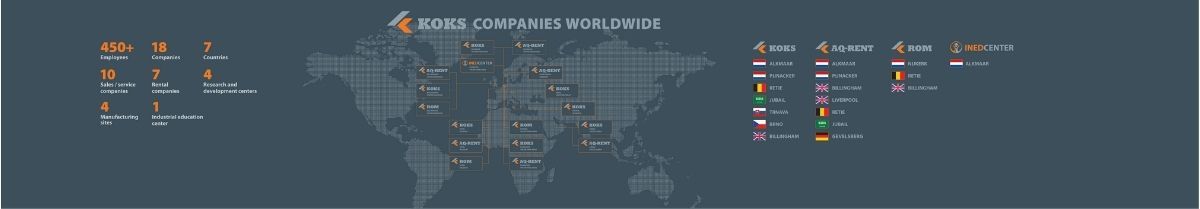 Créé en 1989 par Gerard Koks père, KOKS Group est devenu une entreprise internationale et dynamique avec sept sociétés d'exploitation spécialisées aux Pays-Bas, en République tchèque, en Arabie saoudite et aux États-Unis ainsi que des parts dans des entreprises de location aux Pays-Bas et au Royaume-Uni.
