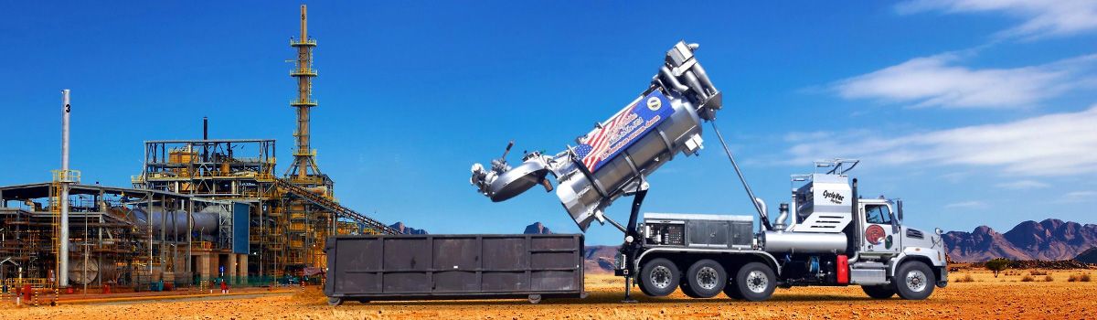 A vacuum truck which is mounted upon a vacuum tank is called a wet substances DOT unit. By means of a vacuum pump a negative pressure is applied to this tank. This pressure creates a pressure difference between the atmosphere and its contents. This results in a suction effect: air (gas) is discharged into the atmosphere via the vacuum pump. Due to this wet substances units are also called pressure/vacuum trucks (or DOT units).