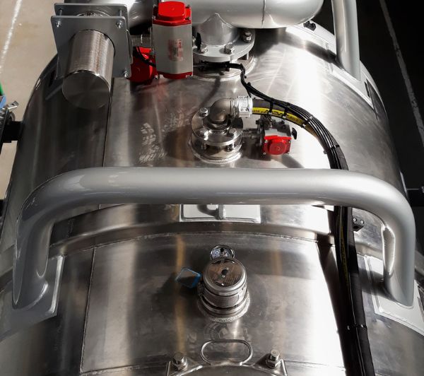 Wet substances vacuum trucks with ASME, DOT 407/412 and/or ATEX (Ex) certification are further equipped with various safety equipment that makes them suitable for the transportation of hazardous substances on public roads. These include, for example, impact/roll bars, tank locking, nitrogen connection, etc.